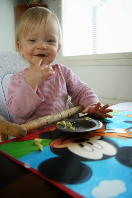 Meillä on nämä pari päivää ollut kunnon perhepäiviä. Sunnuntaina jatkoin joulusiivousta (pitää alottaa hyvissä ajoin, ettei stressi iske :D) ja tuli käytyä matotkin tamppaamassa. Eilen jatkettiin kotipäivää ja ihmeteltiin aamu Marian kanssa kotona, kun Niko oli toimistolla töissä ja kävi sen jälkeen pankissa neuvottelemassa vähän lainoista ym. Marian kanssa on nykyään ihan superkivaa olla kahdestaan. Likalta irtoaa niin paljon omia höpinöitä ja tykkää viihdyttää välillä turhankin väsynyttä äitiä. Eilen tuli Marialta uusia sanojakin! Ihkä (iskä) ja yvää (hyvää). Kiva seurata, kun tyttö haluaa näyttää mitä osaa ja tekeekin sen niin mielellään, mm sormiruokailu on ihan hitti nykyään! 🙂 Voi jopa antaa kunnon lautasen samalla tietäen ettei sitä heti ensimmäisenä olla paiskomassa seinään.