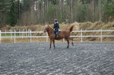 Kun sain Topin kunnolla rennoksi ja kevyeksi edestä, alettiin ottamaan laukkapätkiä. Näissä ollut paljon ongelmia herran ennakointihalun sekä oman istunnan takia, joten nyt jännitin todella paljon miten saadaan onnistumaan. Mutta sainkin yllättyä positiivisesti, Topi reagoi laukka-apuihin todella herkästi! Välillä erehdyin lukittumaan pohkeella kiinni, jolloin lähdettiin kaahottamaan niin että rapa lensi, mutta pienillä pidätteillä mentiin helposti istuttavaa, pyörivää laukkaa maltillisella vauhdilla. Tämä sama tapahtui myös eilen, mutta tosin eilinen oli kaikinpuolin parempi ratsastuspäivä, kun saatiin mennä maneesissa illalla kahdestaan eikä äijänkäppänä häslännyt koko aikaa.