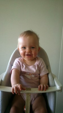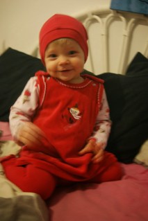 Maria oppi seisomaan tukea vasten sekä konttamaan pari viikkoa myöhemmin. Kakka-sanan lisäksi tyttö alkoi kutsumaan mua sanalla ”äitä”. 🙂 Se aamuherätys oli ihanin, kun rakas katsoo silmät säihkyen unisilmäistä äitiä ja sanoo äitä jonka jälkeen alkaa kikattamaan. Rakas pieni! ♥