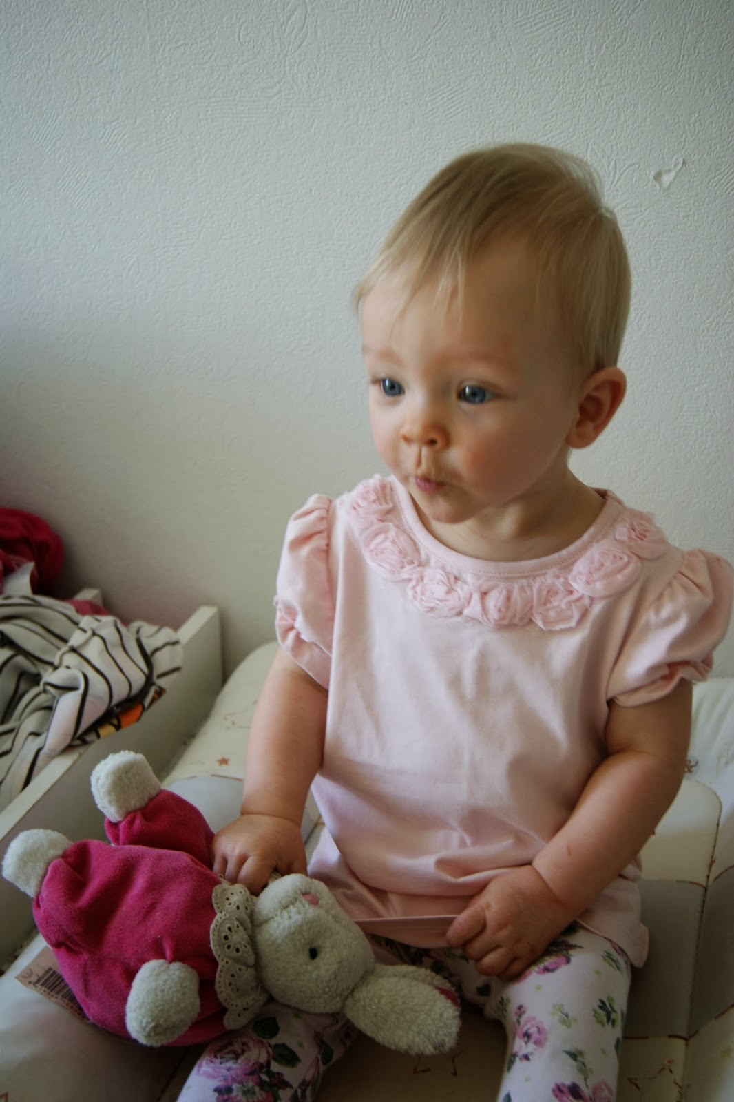 Maria oppi seisomaan tukea vasten sekä konttamaan pari viikkoa myöhemmin. Kakka-sanan lisäksi tyttö alkoi kutsumaan mua sanalla ”äitä”. 🙂 Se aamuherätys oli ihanin, kun rakas katsoo silmät säihkyen unisilmäistä äitiä ja sanoo äitä jonka jälkeen alkaa kikattamaan. Rakas pieni! ♥