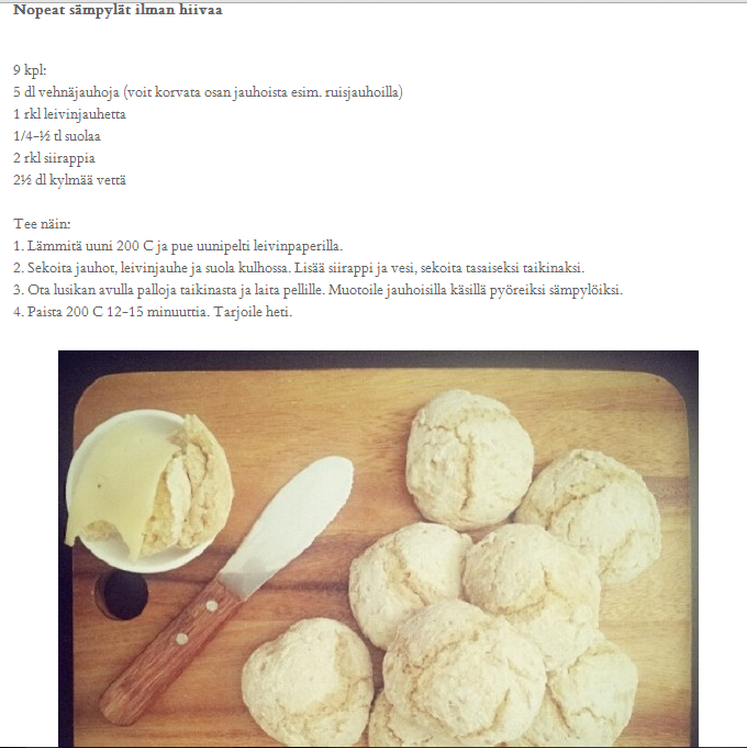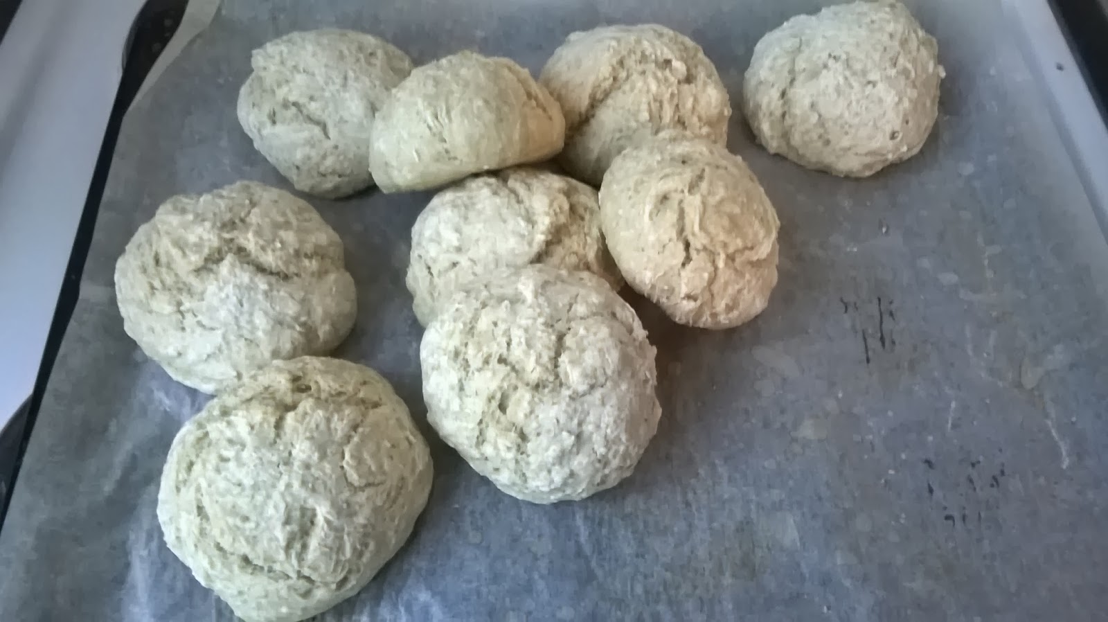 Tein itse ohjeen kaksinkertaisena sekä jauhoja muuttelin sen verran että 8dl vehnäjauhoja ja 2dl kauraleseitä (Marian loput pöllin :)) Oli kyllä hyviä, onneksi margariini loppui niin ei Niko niitä heti syö kaikkia pois.. 🙂