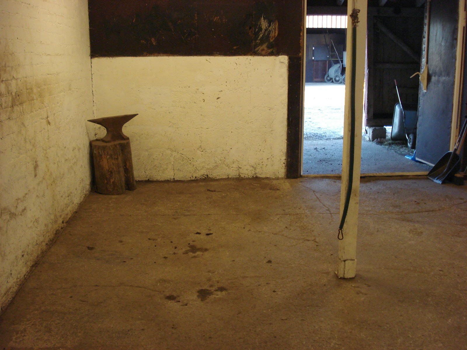 Tällä kohdalla on ennen ollut karsina, mutta nykyään siinä hoidetaan hevoset. Tilaa on hyvin ja kengitykset ym hoidetaan tässä. Hevoset saa kahdella ketjulla kiinni halutessaan.