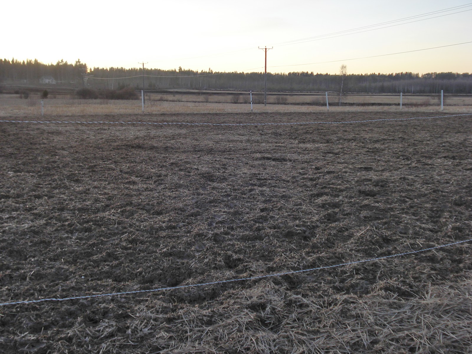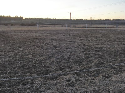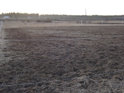 Kenttä on suhteellisen hyvän kokoinen. Pohja on huono kuten peltoalueilla yleensä on. Kesällä käsitykseni mukaan kenttä hiekotetaan ja todennäköisesti tehdään paremmaksi, mutta upottavaksi se jää vaikka kuinka hiekkaa siihen lyötäisiin. 🙂 Tallilla on myös estekalusto odottamassa parempaa keliä, jolloin myös hyppelyt onnistuu paremmin. Suossa kukaan halua pomppia. 😀