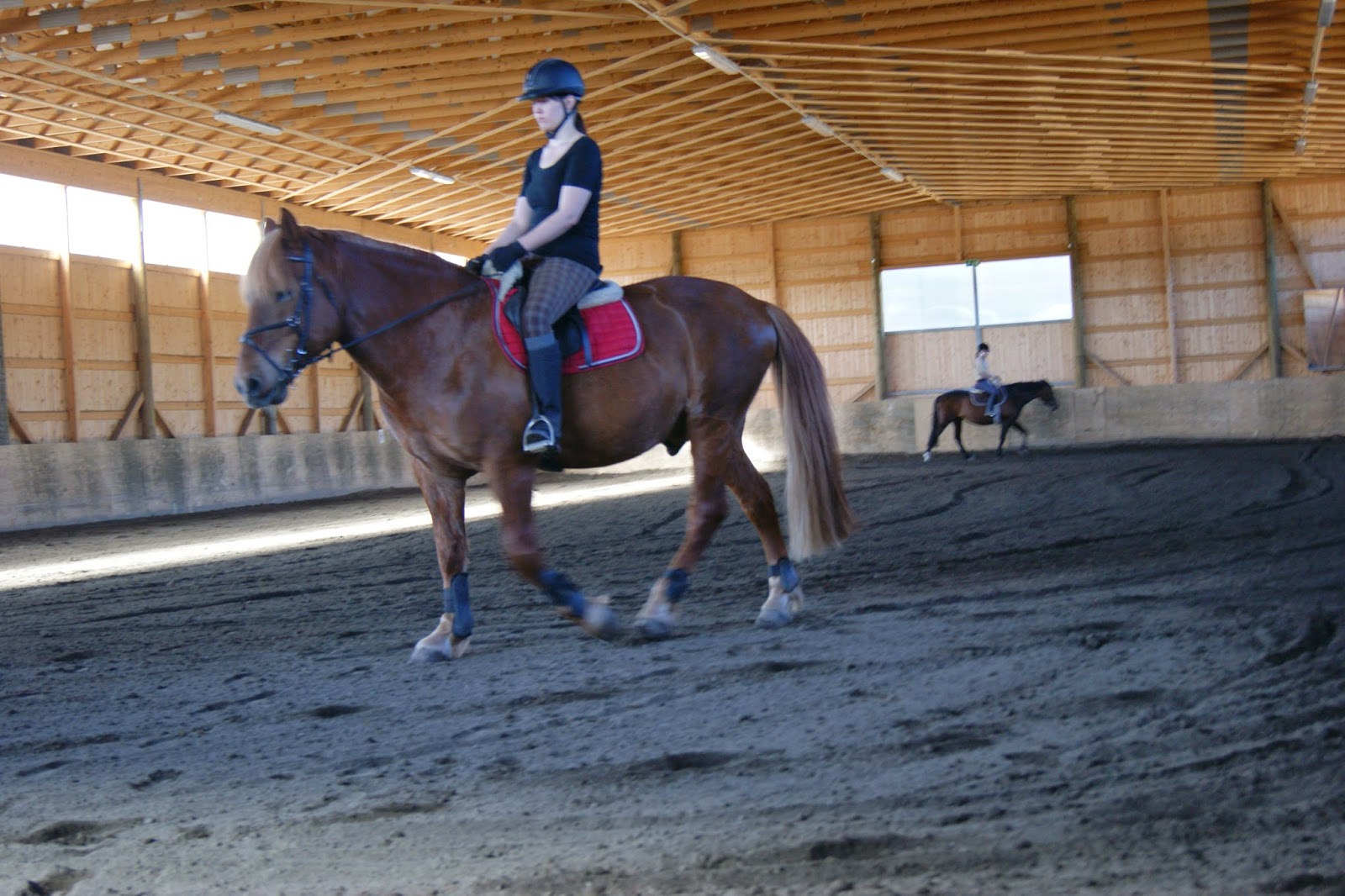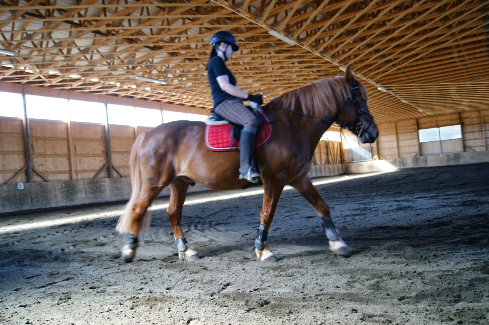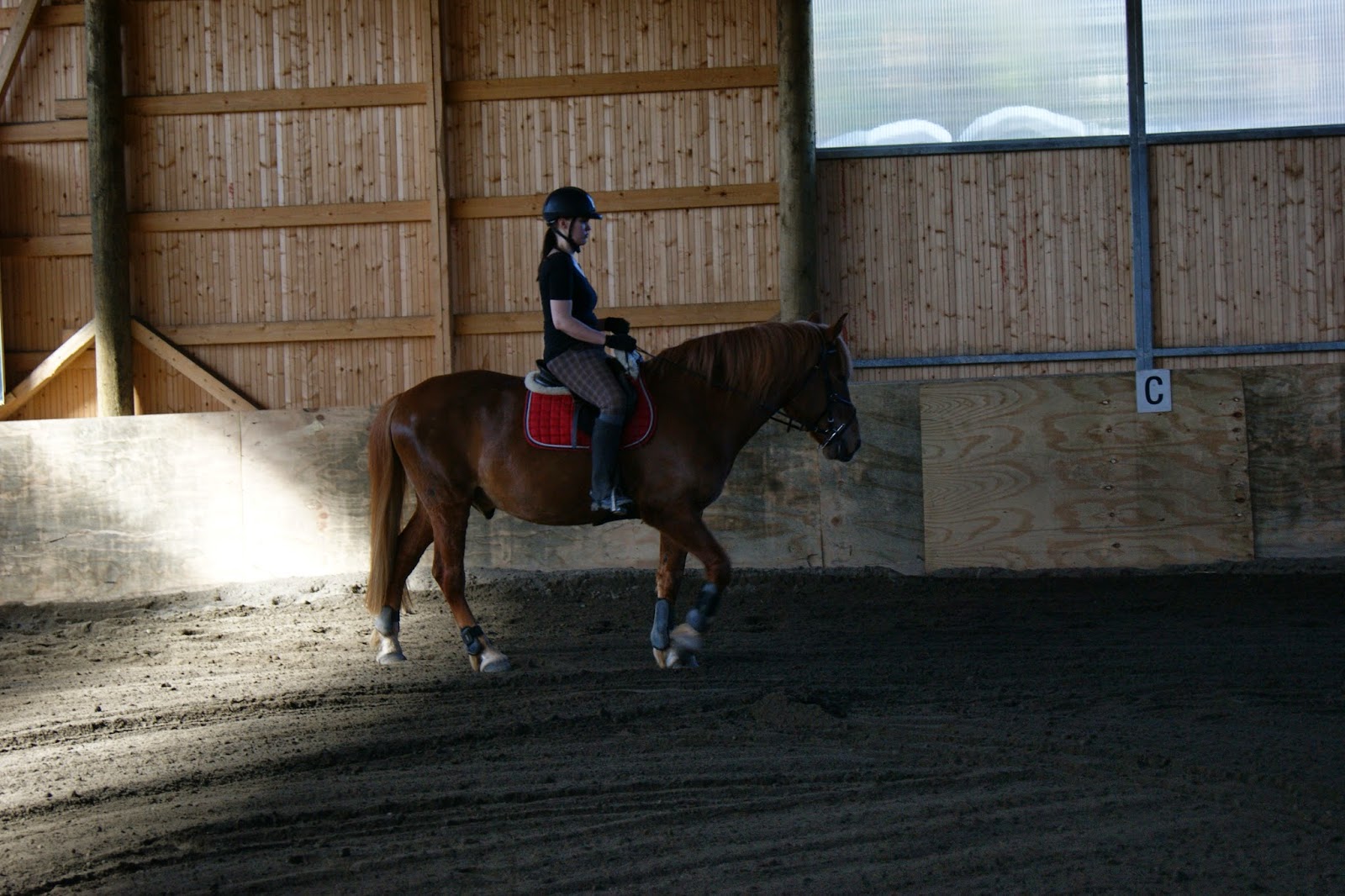 Aamulla puoli 10 lähtö tallille, kävin nappaamassa N:än kyytiin ja menoksi. Jouduttiin maneesilla menemään, kun kentällä oli valmennukset menossa.