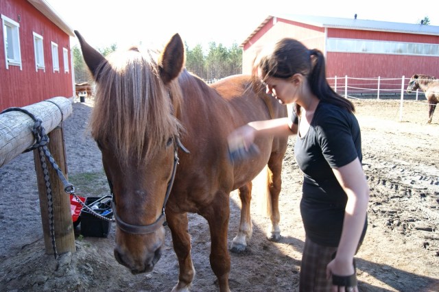 Hieman tympäsee, kun kunnon ravipätkistä ole kuvia mutta nyt kun tiedän, etten itse jännitä muiden läsnäoloa ja että Topi pitää tosi perusteellisesti verrytellä käynnissä, niin kulkee ravissa paljon paremmin! Seuraavaa kuvaajan paikalla oloa odotellessa. 😉