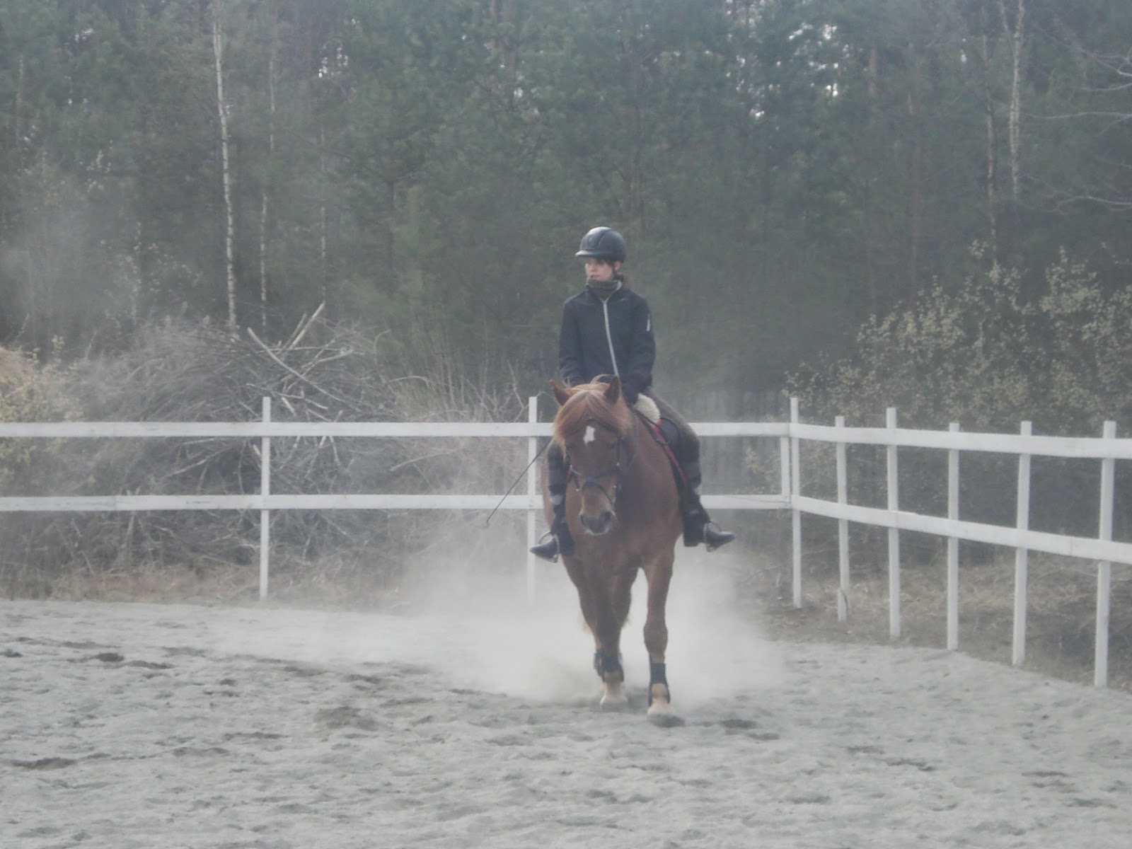 Seuraavaksi otettiin ravi työn alle, ja tästä sanoinkin valkulle heti että tempon ylläpito on ollut hankalaa. Heti kun Topi rentoutuu ja kulkee pehmeässä muodossa, niin vauhti hiipuu ja sitten kun pyytää eteen niin rentous katoaa. Otetiin pienelle ympyrälle ja siinä täytyi saada pidettyä Topi hyvällä tempolla (polkee kunnolla takaa) ja rentona samaan aikaan. Tämä saatiin suht nopeasti kondikseen, onneksi itse opin nopeasti. Topi oli niin eri tuntuinen, kun ei painanut lainkaan kuolaimelle vaikka oli rento! Alkuun teki sitä siinä pikkuympyrällä, mutta sitten sain siihenkin hyviä niksejä niin ai että! Ihan mahtava!