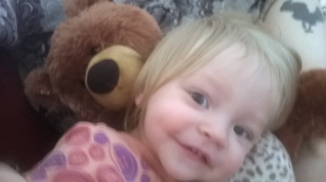 | Sohvalla pötköttelyä äidin ja T-enon ostaman nallen kanssa. 🙂 |