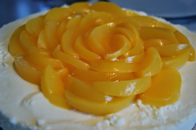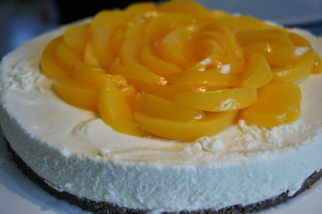 | Säilykepersikat sopi todella kivasti kakun maun kanssa! |
