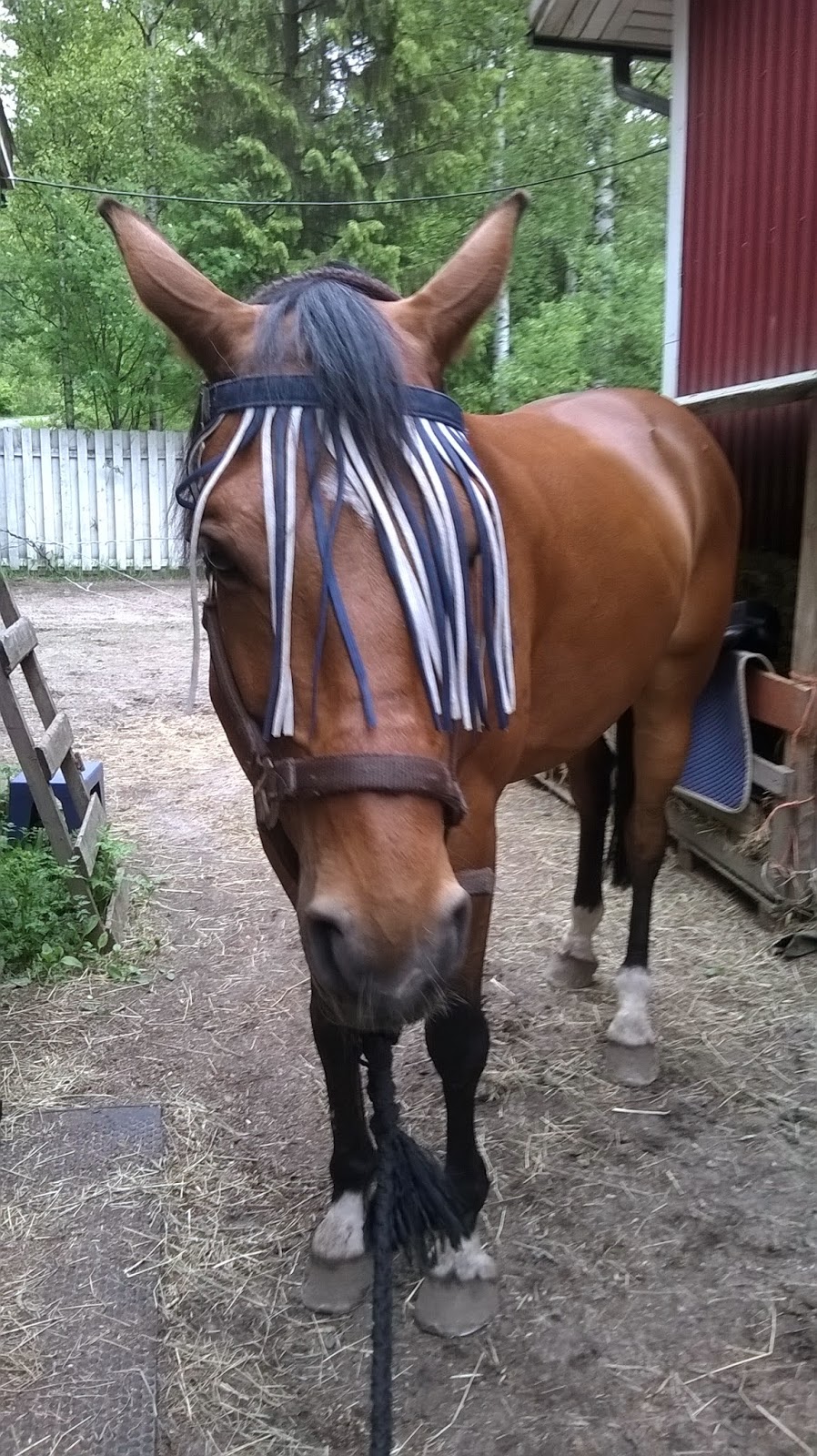 Tänään pyöritin tallin pihassa jonkun 5 minsaa, että saan kuulolle ja sitten maastoon. Vaikka autoja ajoi satasella vastaan, ei Mikki välittänyt mitään. Mönkijän ääni metsiköstä jännitti, mutta ei minkäänlaista sinkoilua mihinkään. Ainut mikä tuossa reilun puolen tunnin maastoilussa ärsytti, oli ne hemmetin itikat ja Mikin häsläys! 😀 Semmoista epämääräistä häseltämistä, mitä nyt voi odottaakin hevoselta jolla entinen omistaja mennyt vain ja ainoastaan maneesissa. Kovan työn on A ja hänen siskonsa tehnyt, että saaneet pojan tuohon pisteeseen, että pystyy huoletta maastossa ravailemaan ja vaikka väistättämään jos ei muuta keksi, ilman että hevonen sinkoilisi joka paikkaan.