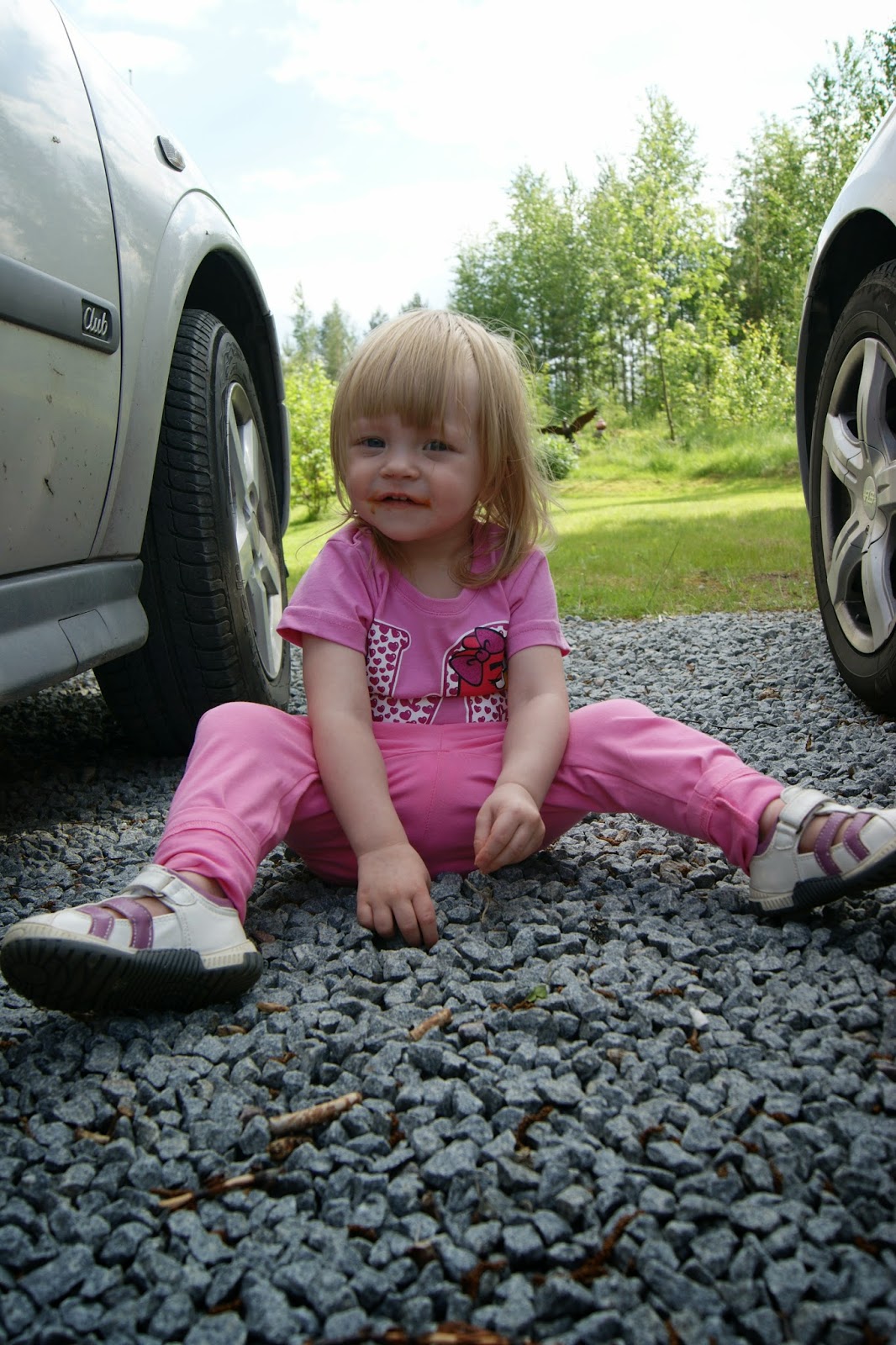 Maria oli meidän ”reissun” aikana käynyt omassa altaassa pulikoimassa ja herkutellut mummon ja papan kanssa. Rassu sitten nukahti autoon, kun lähdettiin ajelemaan kotiin. Ollut likalla niin kova tohina päällä ja pakko myöntää, että kyllä itsekkin olen ihan älyttömän väsynyt!