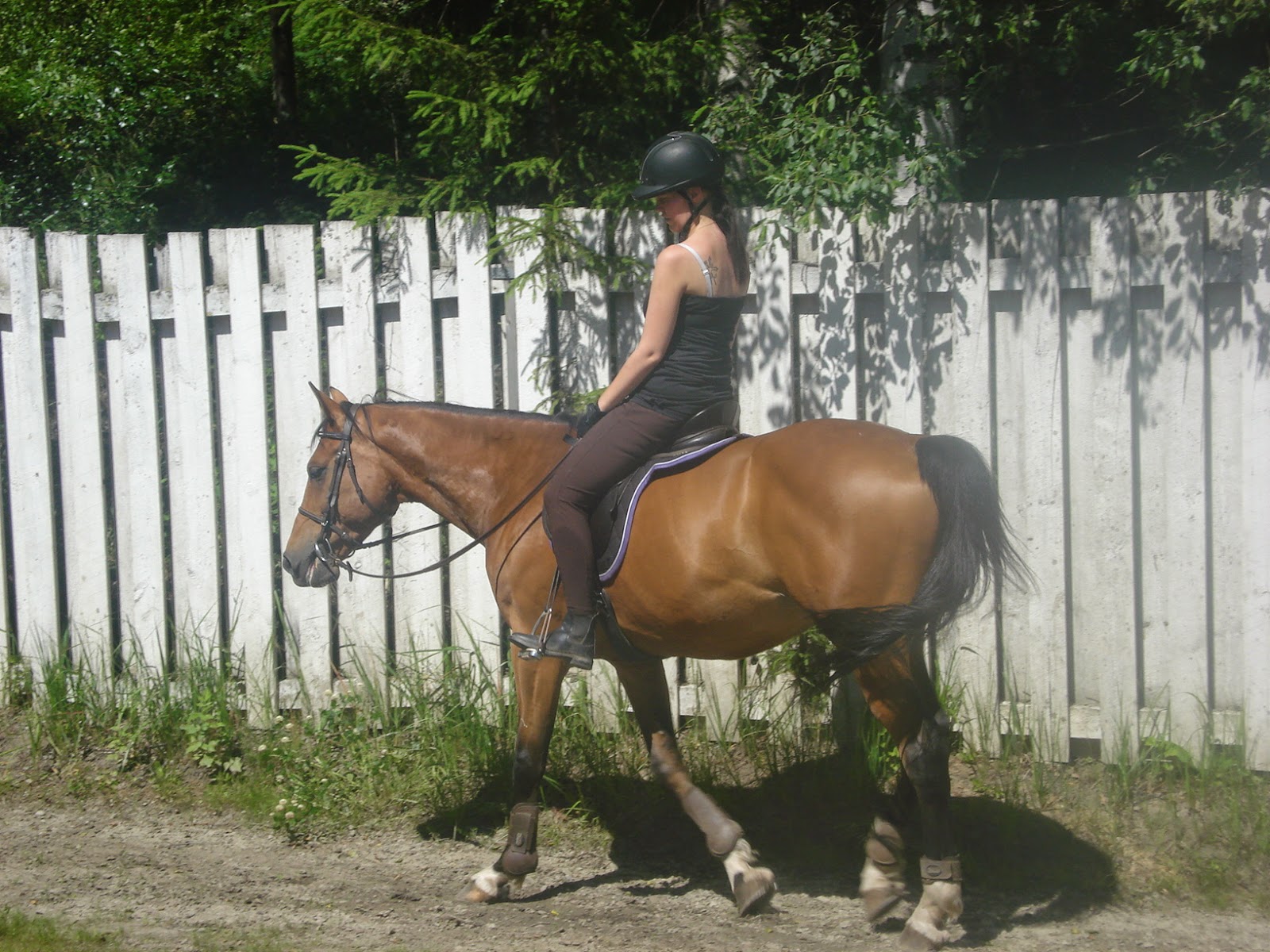 .. kiristän satulavyötä? Eipä oikein mitään. Jos Mikkiä ei huvita lähteä treenaamaan, alkaa pullistelemaan mutta yleensä antaa ihan hyvin kiristää, jos se tehdään pari reikää kerralla. 🙂