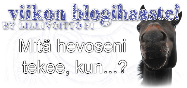 OHJEET: Nyt kerrotaan miten hevosemme reagoivat eri tilanteissa! Vastaa kysymyksiin omasta-, vuokra- tai vaikka hoitohevosestasi. Voit keksiä lisäksi myös omia kysymyksiä ja haastaa kaverisi vastaamaan niihin.Kopioi halutessasi yllä oleva banneri postaukseen ja linkitä tämä haastepostaus, josta ohjeet löytyvät. Haasteen voi tehdä kuka vain ja mukaan voi tulla silloin kun aihe on mieleinen. Linkitä sinun tekemä postaus tämän postauksen lopussa olevaan osioon, jonne kaikkien haasteeseen vastanneiden blogit tulevat. Sieltä minä ja muut voivat käydä sitten lukemassa sinun tekemän postauksen.