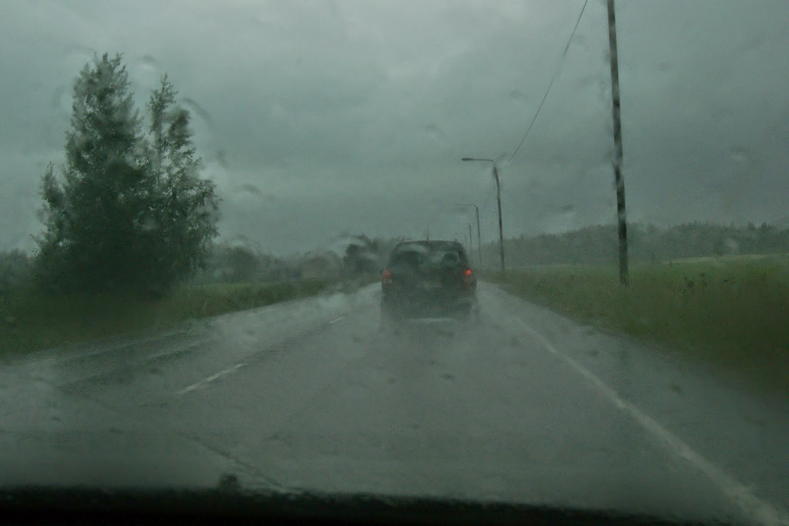5 tuntia autossa istuttu uudelleen ja nyt oli vaihteeksi kodin päässä kamala ukkosmyrsky! Puita kaatunut tienkin päälle, vettä tuli kuin esterin pepusta ja näkyvyys oli lähestulkoot täysi nolla. Maria ei ole koskaan noin paljon auton kyydissä!