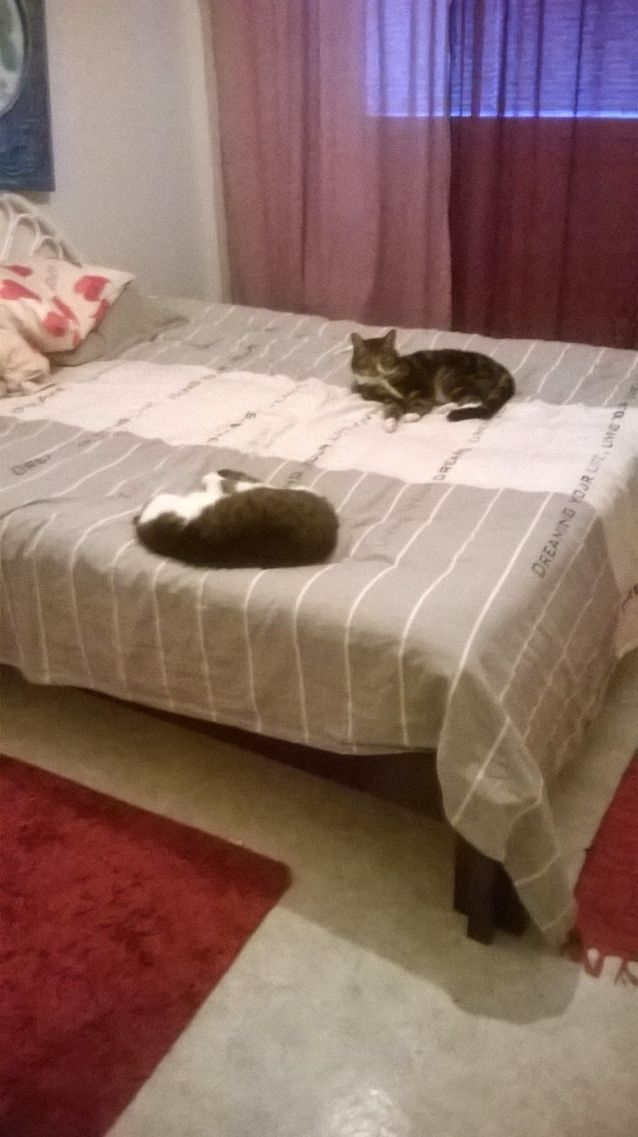 Tänään saatiin myös vihdoin ja viimein uusi sänky kotiin! Mariahan heti kävi siinä mylläämässä ja saa nähdä, miten päästään Nikon kanssa nukkumaan kun sängyn tilanne oli tuossa tunteroinen sitten tämä: