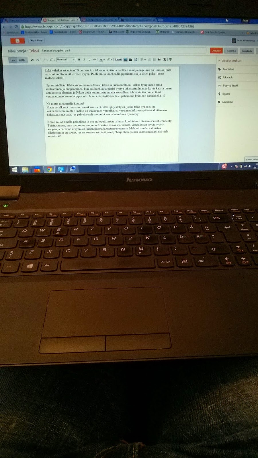 Ehkä vähäksi aikaa taas? Kone siis tuli takaisin tänään ja edelleen samoja ongelmia on ilmassa, mitä on ollut huoltoon lähtemisen syynä. Puoli tuntia touchpadin pyörittämistä ja sitten poks – koko rakkine sekosi!