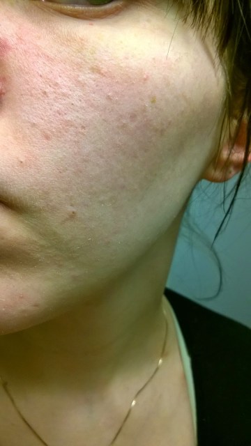 Leuan ja kaulan rajasta on kaikki lähtenyt, poskissa ja leuassa on vielä jotain kuvia arven tapaisia, mutta annetaan vielä aikaa iholle. Rasvoihin on iho tottunut ja polttelu loppunut kokonaan. 🙂