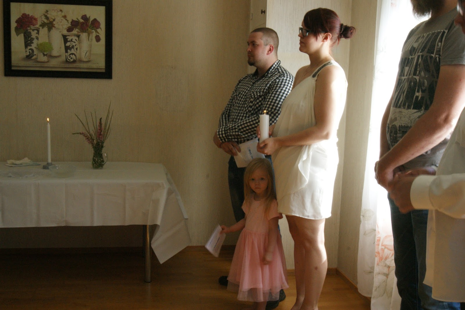 Niin kamala stressi yhdestä tilaisuudesta, joka meni kuitenkin paremmin kuin hyvin. Vieraat sanojensa mukaan viihtyi, vaikka tämä meidän mökki on kuin sauna niinkuin aina aurinkoisella kelillä. Juhlat oli intiimit, kotona pidetyt joissa oli vain enot, kummit, isovanhemmat ja Marian kummit paikalla. Ja pappi tietenkin. Muksuja oli huushollissa kaikenkaikkiaan 6 ja voin hyvällä omalla tunnolla sanoa, että kaksi on meille enemmän kuin simppeli luku, oli aikamoinen hulina! 😀