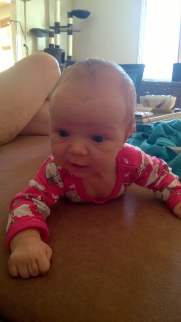 En ollut varmaan edes muistanut kirjoitella neuvolakuulumisiakaan, kun käytiin ennen ristiäisiä edeltävänä päivänä. Tyttö kasvaa hyvin, maito riittää kun painossa ei mitään huolta. Tai sitten sitä osaa vain paremmin tällä toisella kerralla luottaa omiin vaistoihin ja lakata kyttäämästä niitä käyriä? 🙂 Tosi jäntevä Mia on ollut alusta saakka ja nyt kannattelee päätään todella hyvin suhteellisen pitkiä aikoja kerralla, mikä tuntui ainakin anopin yllättävän. Vielä kummiskin tuetaan niskaa nostaessa, vaikka siinäkin hommassa useimmiten pää tulee mukana jäntevänä, silti ei viitsi liikaa lihaksia rasittaa. 🙂