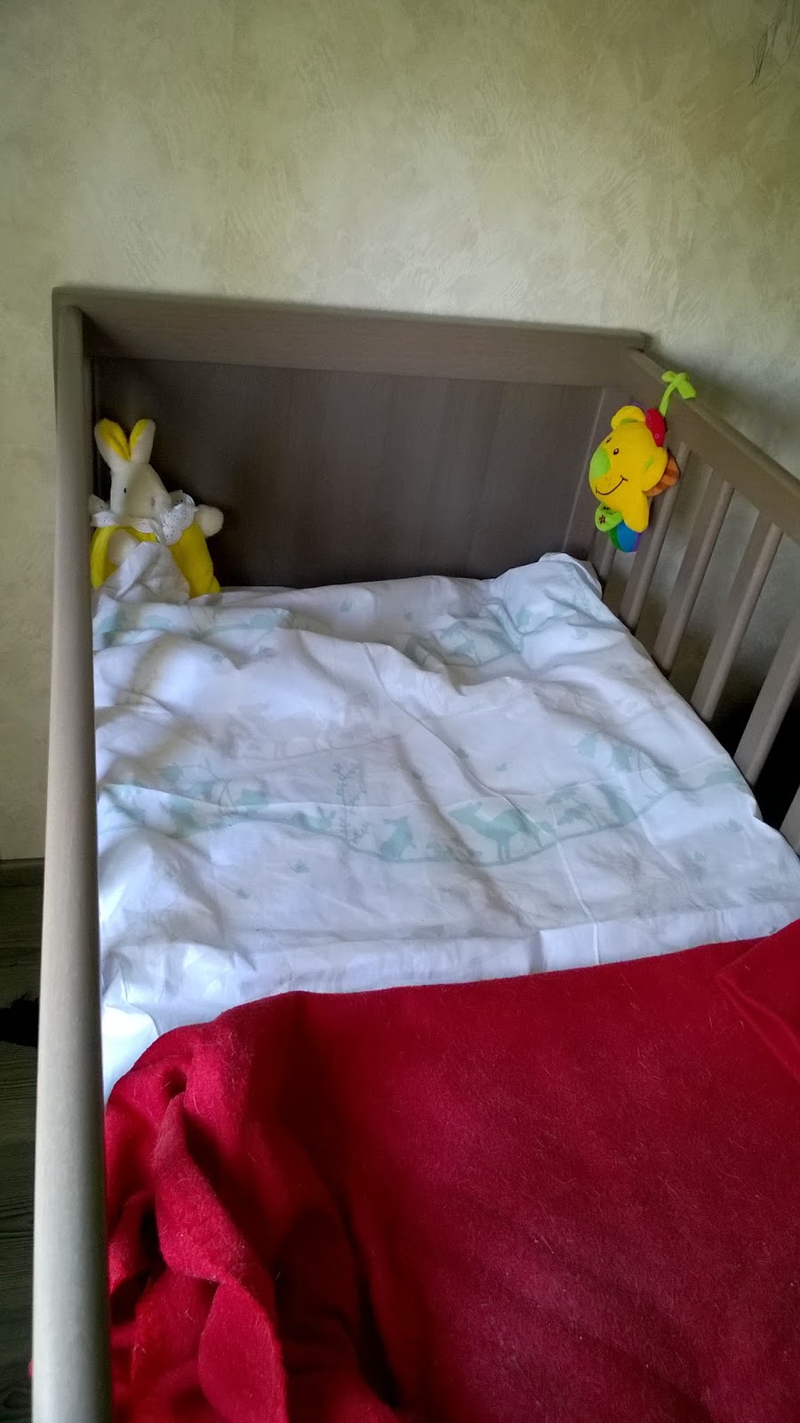 Kolme tuntia oltiin eri sängyissä jonka jälkeen tuli nukkumaan meidän väliin loppuyöksi. Tällä jatketaan, Mian ehdoilla tietenkin. Nukutetaan omaan sänkyyn ja kun herää syömään, jää tilanteesta riippuen meidän väliin – tavoitteena kuitenkin on se, että sitten kunhan yöimetykset loppuu niin likka on tottunut omaan sänkyyn eikä vierasta sitä paikkana siinä vaiheessa. 🙂