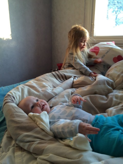 | Mia pulisee Marialle samalla kun Maria keittelee ruokaa Mialle 😀 17.1.2016 |