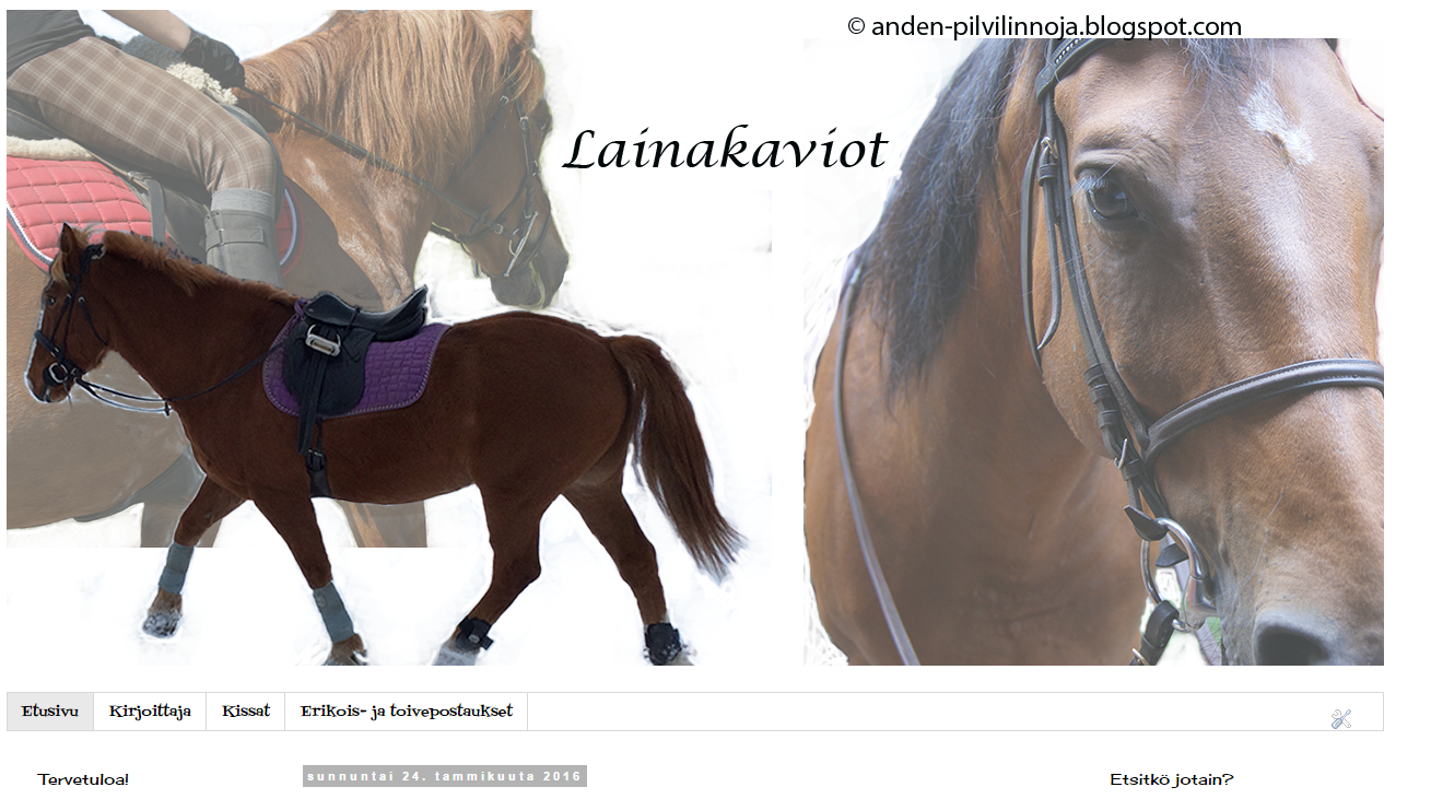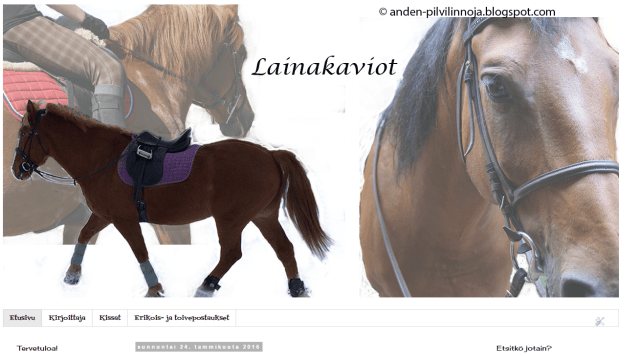 Sain vihdoin aloitetuksi ulkoasulliset muutokset tälle puolelle. Banneri vaihtui ja samalla blogin nimi, mutta osoite pysyy samana. Bannerin kanssa meinasin polttaa hermoni, kun 1,5 tuntia tappelin photoshopin kanssa ja kuvien valkkaamisessakin meni aikansa. Lopulta päädyin nappaamaan kuviksi ne hevoset, jotka on ollut mulle merkittävimmät ja opettavaisemmat.