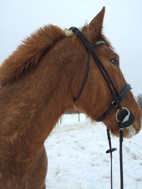 Mikään ei ole niin ärsyttävää kuin plussakelit. Kenttää oli aurattu eilen, mutta ei kummiskaan lanattu jonka takia pohja oli todella raskas kun lumi oli sellaista loskapaskaa (pahoittelut kielenkäytöstä, voiko sitä paremmin edes kuvata? :D) että itselläkin teki tiukkaa koittaa ottaa alkukäyntejä maasta käsin. Selkään kun pääsi, niin Ressulla silmät pyöri kuin plussapallot ja tuntui että oli enemmän virittynyt viulunkieli kuin laiska, mutta loppupeleissä säpsysinkoiluja tuli vain kaksi ja muuten oli niin järkyttävä eteenpäin potkittava muuli. Tietenkin juuri silloin kun raippa tallissa.