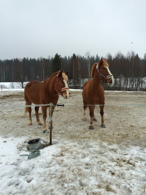 Ressu Ressu Ressu. Aina niin tyyni ja planeettojen asennosta riippuen kaikkea muuta kuin tyyni. Tiistaina treenit oli ihan mahtavat, kaikki sujui kuin rasvattu. Lukuunottamatta kesken laukkaympyrän saatua pieruhepulia kun pieni kipristävä pakkastuuli pyyhkäsi Ressun persuuksien takaa – lopputuloksena pukkilaukkaa heittävä tynnyri pitkin kenttää vieden mua kuin tiskirättiä. Ihme kyllä pysyin tässä rodeossa kyydissä, vaikka vauhdikkaita u-käännöksiäkin tuli. 😀 Ravailtiin pari pääty-ympyrää ja uudelleen laukannosto jonka jälkeen ei ollut mitään ongelmaa enään missään. Loppuravailuja ja pieniä raviväistöjä ennen lopettamisia. Ressu oli hiestä aivan märkä ja omistaja naureskelikin että tainnut Ressu tyhmyyksiään tehdä kun noin hikeen oli päässyt – kyllä vain, pelleilystä joutuu kovempaan treeniin. 😉