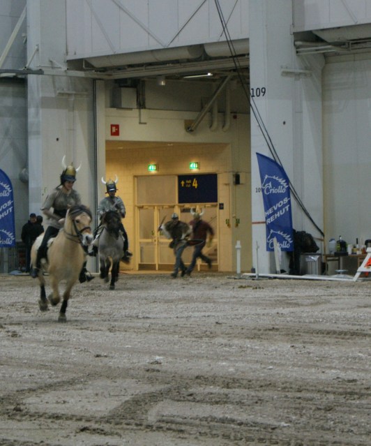 Olin odottanut itse tosi paljon viikinkihevosia. Upeita Vuonohevosia esitettiin valjakossa sekä ratsain. Eniten vain ärsyttää, kun kameran putki alkaa sanomaan itseään varmaan irti, kun ei meinaa edes urheilumodella pysyä enään liikkeen perässä, joten pahoittelut vähän rakeisista kuvista.