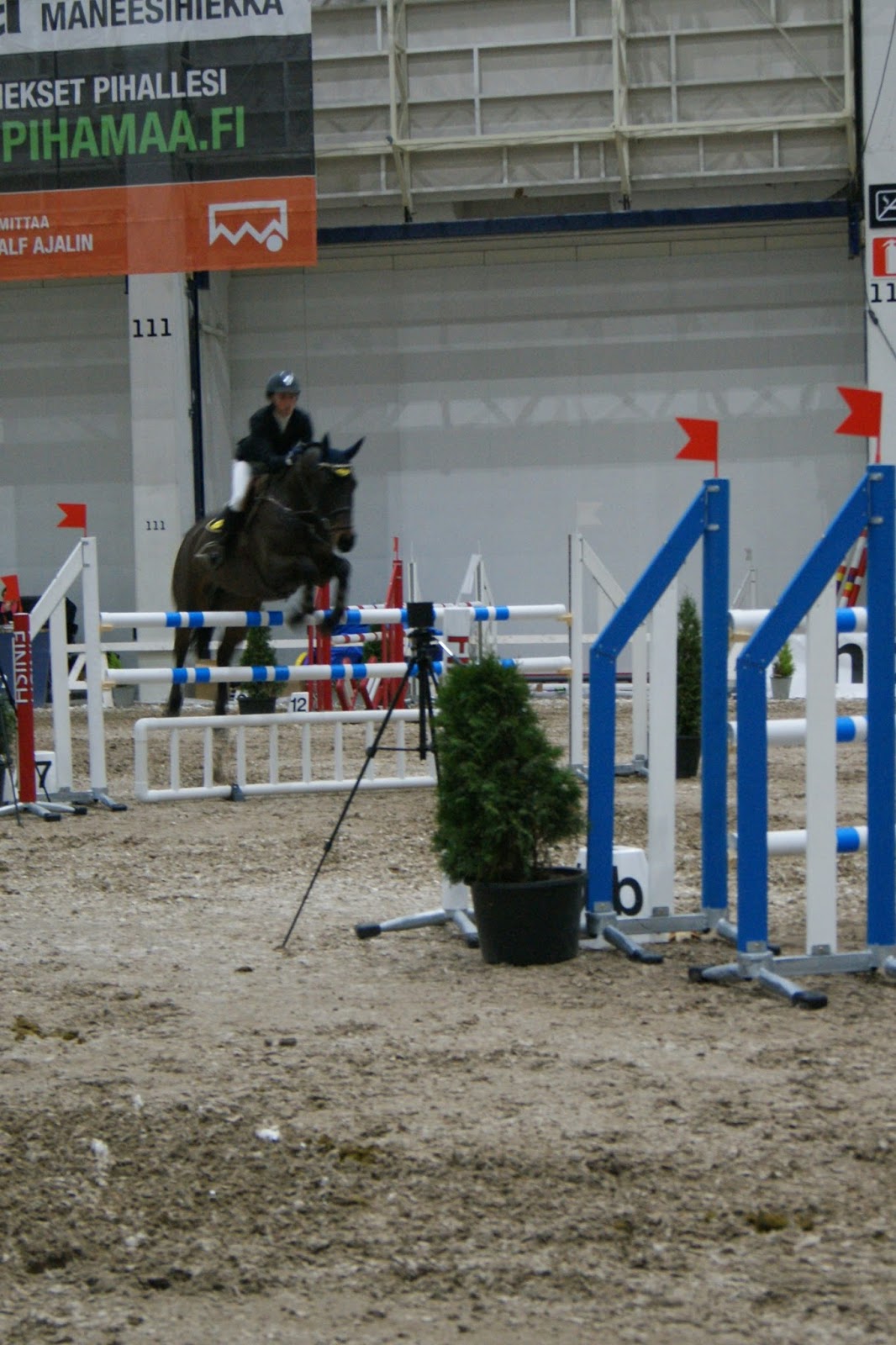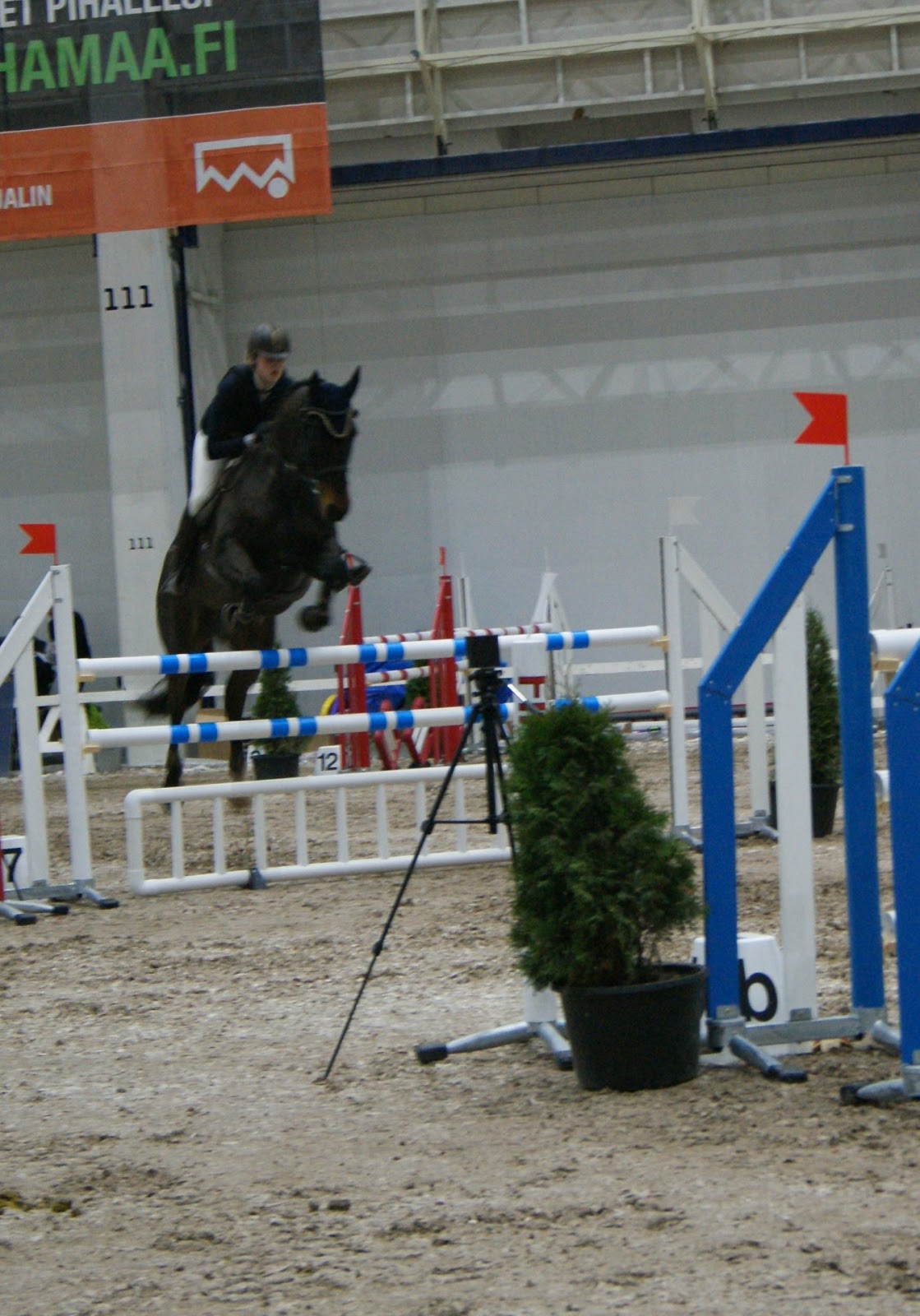 Illan Small Tour 125cm luokka aiheutti kylmiä väreitä, kun pieni tila ja tiukkoja käännöksiä ratsukot teki, jotta pysyvät sallitun ajan sisällä. Ei musta tuohon hommaan olisi, kouluratsastus on kyllä ehdottomasti mun juttu. 😉