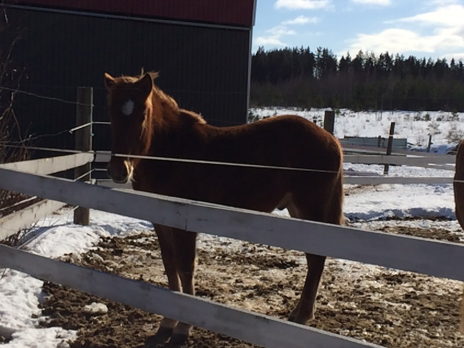 Aivan hurmaava ihana poika kyllä on eikä kyllä kummoisempi ole hänen kaverinsakaan, juuri ruunattu Väiski-poika. 🙂 Olivat kuulemma jo eilen karanneetkin (Väiski hajottanut tallin ulkoseinässä olevan oven, josta pääsee pihattokatoksen sisälle), mutta Oliver on kuulemma harvinaisen halinalle että oli tullut aika sukkelaan takaisin.