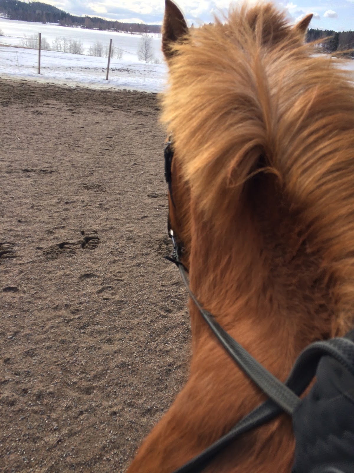 Ressulla oli tiistaina suhteellisen rankka treeni ja oon ollut ihan äärettömän väsynyt, kun ennen Ressun liikutusta olin käynyt tekemässä aamu- ja päivätallit joten ajattelin tehdä pelkän humputtelutreenin. Tallilla sitten totesin, että mennään ilman satulaa kun ei tuullut oikeastaan yhtään. Olin kyllä varautunut, että Ressu olisi ihan viritetty viulunkieli kun oli jo tarhasta haettaessa aika säpäkkä, mutta yllättävän hyvin herra puksutti menemään eikä juurikaan välittänyt satulattomuudesta. Välillä meinasi herran sietokyky keittää yli, kun mulla oli hakeminen istumisen kanssa – viimeksi Topin kanssa oon ratsastanut ilman satulaa ja Topilla oli enemmän mahaa leveyssuunnassa kun taas Ressulla mahaa on enemmän alaspäin, joten alkuun oma tasapaino oli aivan hakoteillä. 😀