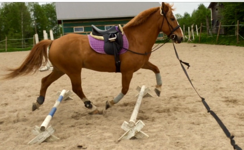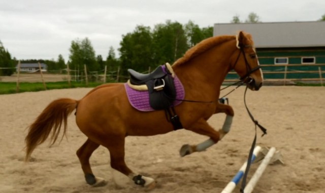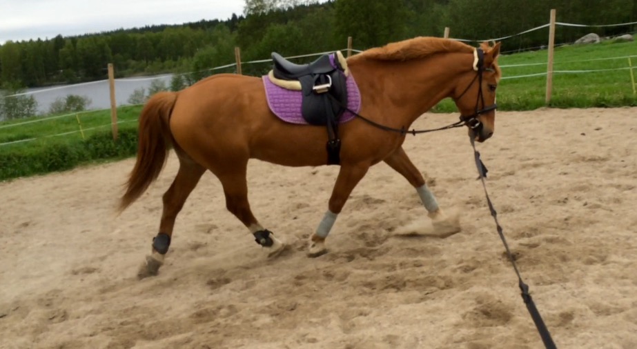 Kerrankin kuuntelin vaistojani enkä lähtenyt edes yrittämään ratsastamista. Tallilla oli aivan järkyttävä myrsky (ei siinä, se jatkuu edelleen kotonakin) ja kenttä kun on aukealla, en viitsinyt lähteä riskeeraamaan turhaan saati heittämään hyvää tunnetta kummaltakaan pois. Laitoin Ressulle kummiskin normaalisti kamat niskaan, mutta laitoin kipittämään liinan päähän. En kummiskaan halunnut pelkästään pyörittää ympyrällä ja kahdella ohjalla juoksuttamista saati edes ajamista ei ole Ressulle opetettu, joten päätin ottaa pari kavalettia hommiin tehosteeksi. Ressu oli paikoitellen alkuun todella vainoharhainen kaikkea mahdollista kohtaan, eikä myrskypuuskat auttaneet asioita millään tavalla. Alkuun laitoin kavaletit raviväleille ja jumpattiin tätä kautta molempiin kierroksiin pari kertaa, joka toisella kerralla ylittäen ja joka toisella ohjasin ohi. Seuraavaksi pidensin väliä laukalle sopivaksi ja sama homma tässäkin, joka toisella kerralla ylitys ja joka toisella ohi.