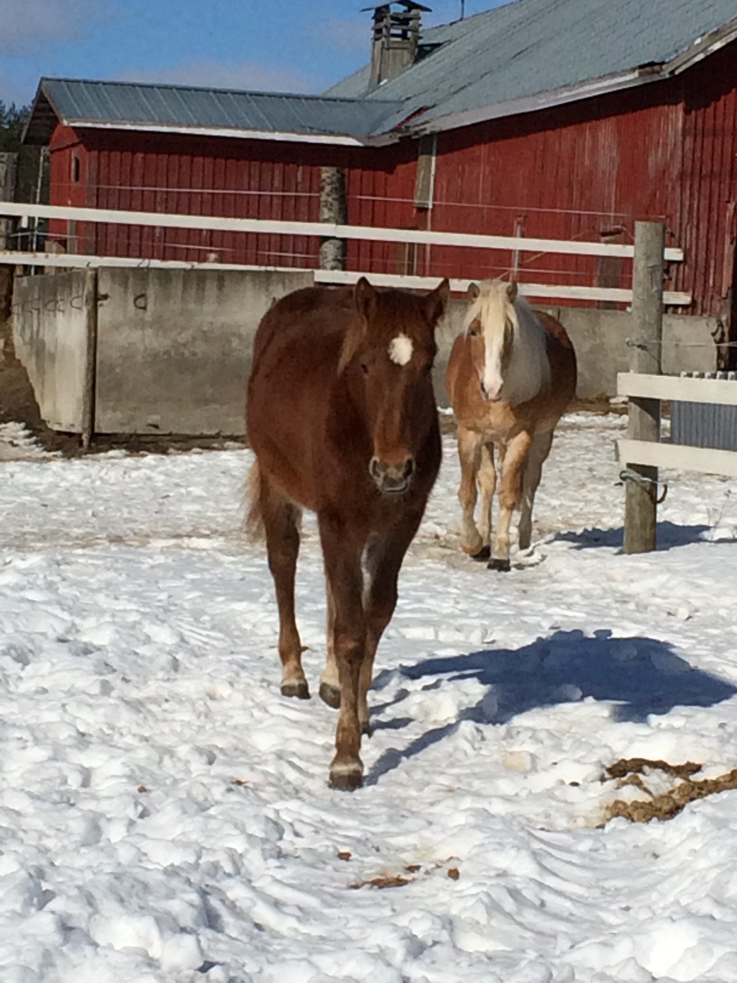 Topin jälkeen kuvioihin tulikin sitten jotain aivan erilaista, mihin olin tottunut – puoliverinen ruuna Mikki. Kun Topi oli ”laiska” ja hidas, Mikki oli nopea ja säpäkkä. Kokematon, kaikkea pelkäävä ja sielun maailmaltaan todella herkkä tapaus. Ratsuna todella raakile, joka ei sileällä osannut juuri mitään kun toimi omistajallaan ainoastaan maastohevosena sekä pihakoristeena. Mikin ohessa tein töitä ravitallilla, jonne mulla oli kotoa 45 minuutin ajomatka per suunta. Pitkä työmatka ja todella pitkät työpäivät verotti omaa aikaani Mikin kanssa – pääsi liikaa seisomaan joka johti moniin vaaratilanteisiin, muunmuassa vaarallinen tippuminen maastossa. Mikin kanssa yhteistyön lopetin tullessani raskaaksi 2014 alkutalvesta – en uskaltanut ottaa mitään riskiä ja Mikki olisi vaatinut lähes tulkoon päivittäistä ja monipuolista liikuttamista jotta olisi ollut turvallinen ratsastettava.