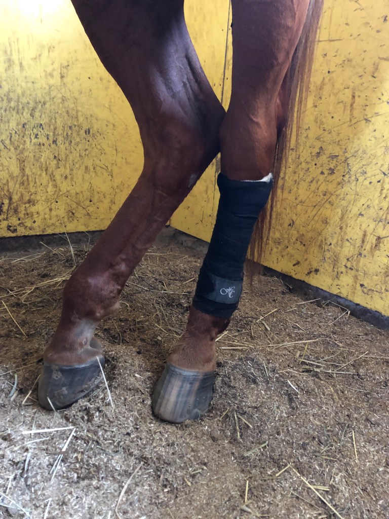 Tiistaina tallille mentäessä odotti turvonnut vasen takajalka (meidän murheen kryyni) ja aikamoinen vekki. Aristi huuhtelua ihan järkyttävästi, onneksi ei harrasta potkimista vaikka ei hyvältä tuntuisikaan. Kevyesti liikuttaessa ei reagoinut mitenkään, jalka oli nesteinen liikutuksen jälkeen joten hyvät putsaukset ja lampaanvillat. Seuraavana päivänä olikin ihan rutikuiva kinttu ja haava jo parempi. Tänään oli taas parempi, mutta seuraillaan miten lähtee paranemaan. Pienen rokotusloman takia rankemmin ei liiku, sunnuntaina taidetaan kokeilla miten liikkuu ja reagoiko jotenkin. Kuitenkin nyt loppuviikko putsaillaan ja hoidetaan. Sunnuntai-iltana ruunien joukkoon meni ennestään tuttu hevonen, mutta liekö laumautuminen ollut niin hyvää alusta saakka jonka rauhan rikkoi uusi tulokas. Onneksi ensijärkytyksen jälkeen on lähinnä pintahaava, sen tukkimaisen turvottelun takia näytti että on pahempi jälki, mutta onneksi ei ollut isompaa. Ennestään jo vamma-jalka, joten potkut ei tee kovin hyvää tuolle, mutta tätä se on näiden kanssa.