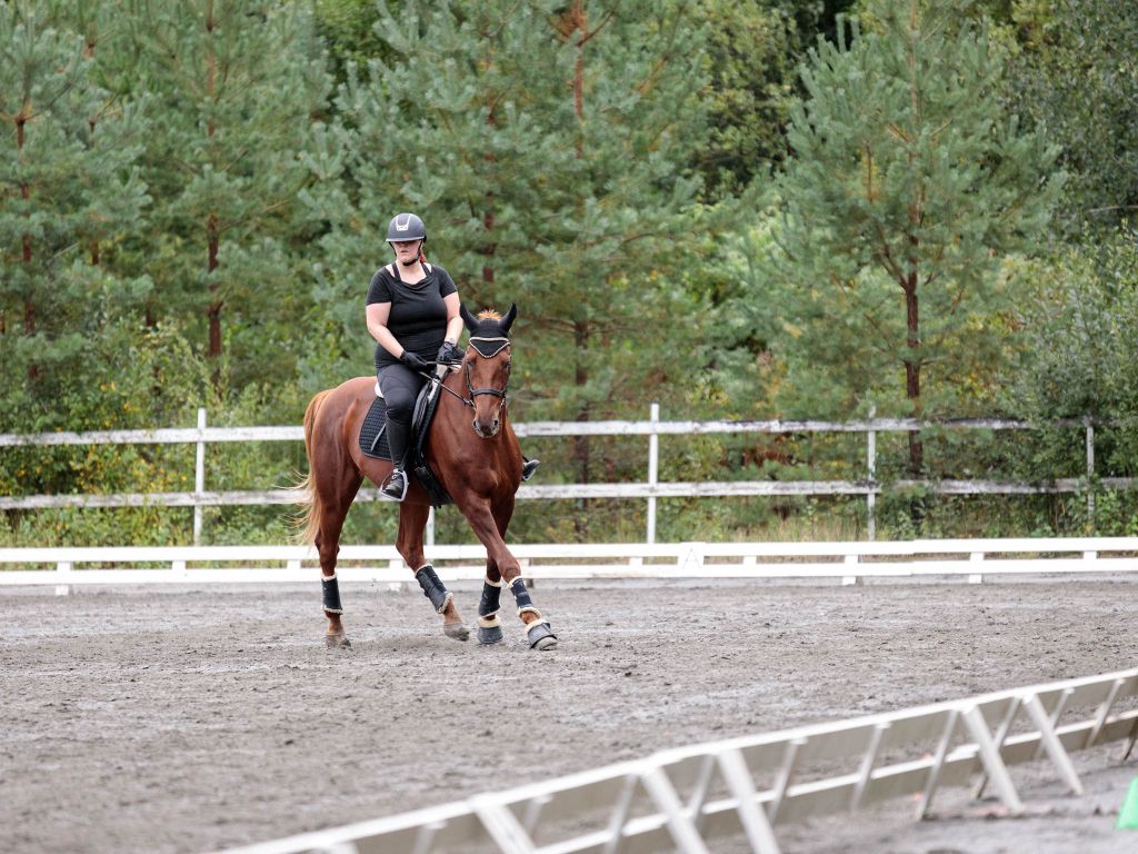 Kaiken kaikkiaan tehdään kaikkea puomeista/kavaleteista ohjasajoon, maastoiluun, juoksuttamiseen, lenkkeilyyn ja perus maastakäsittelyyn (siedättämiset ym). Kokeiltiin myös irtohypyttämistä vuosien tauon jälkeen ja hyvällä tekniikalla hyppää, vaikka ihan estehyppelöt on jätetty jo muutama vuosi sitten pois.