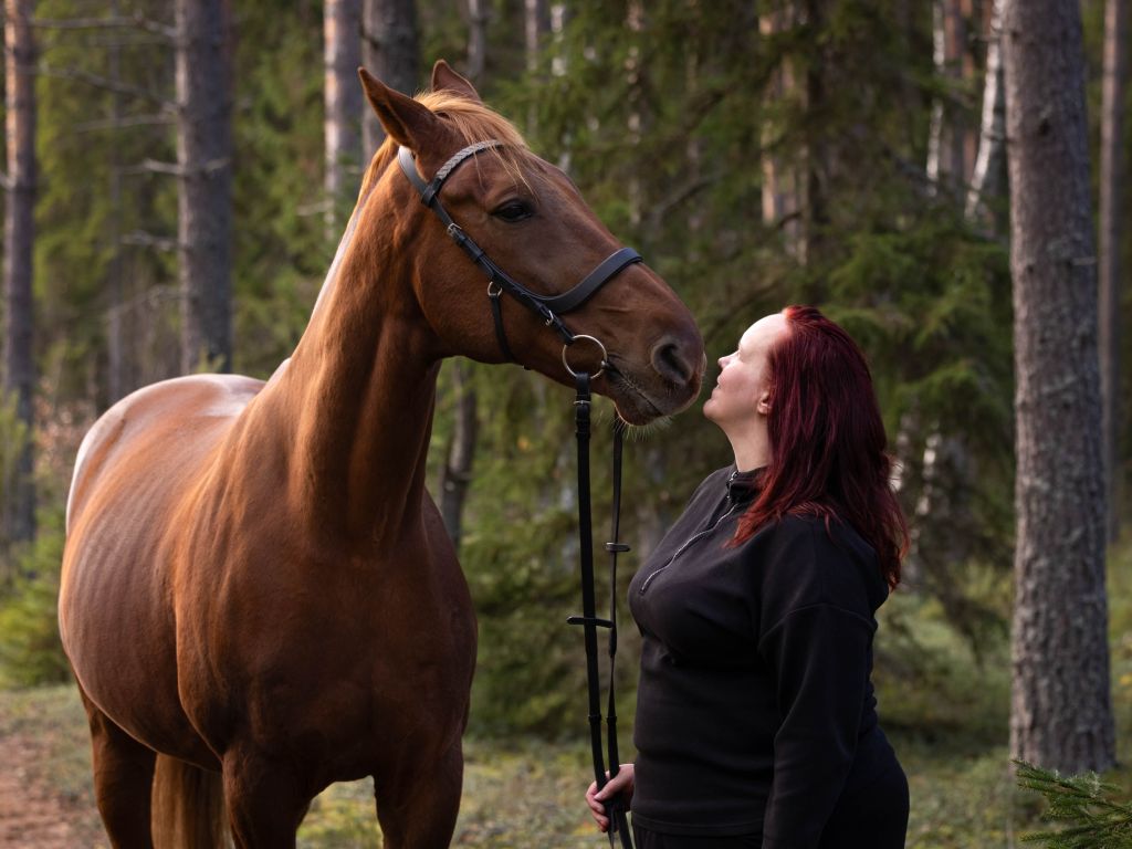 Petu on parhaimmillaan kun tehdään monipuolisesti. Tämän vuoksi olen ottanut tavoitteeksi käydä useammin maastossa myös ratsain, paljon käydään maastakäsin talutellen. Maastossa vielä jonkin verran jännittää, mikä näkyy säpsymisenä ja hallittuna ”poistun paikalta” -kääntyilemisenä. Ruuna on kyllä todella taitava, ongelma onkin enemmän oma pää vanhojen traumojen vuoksi.